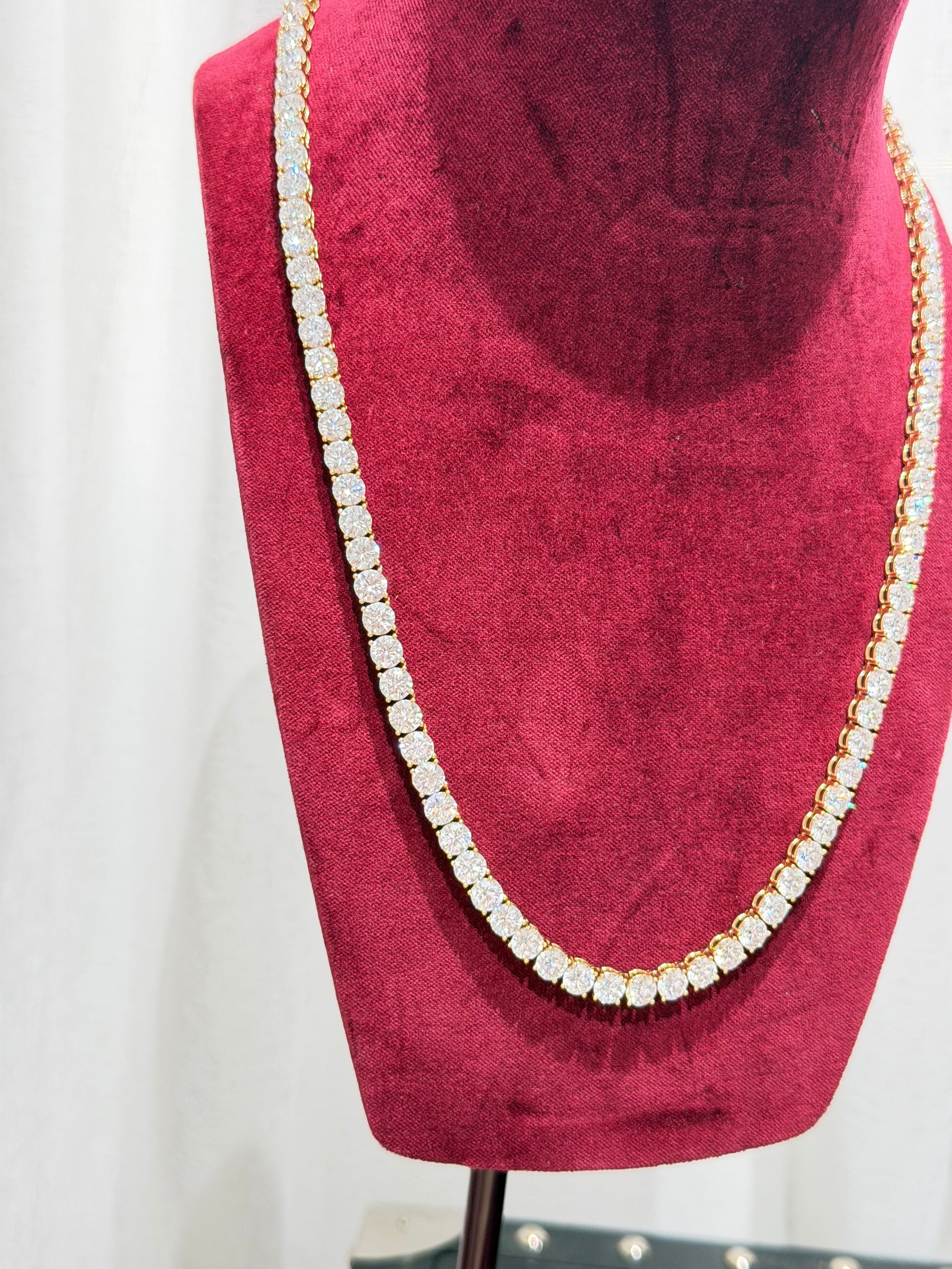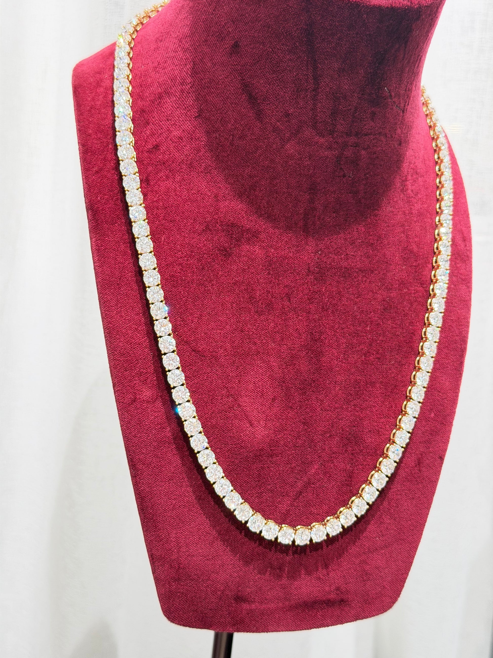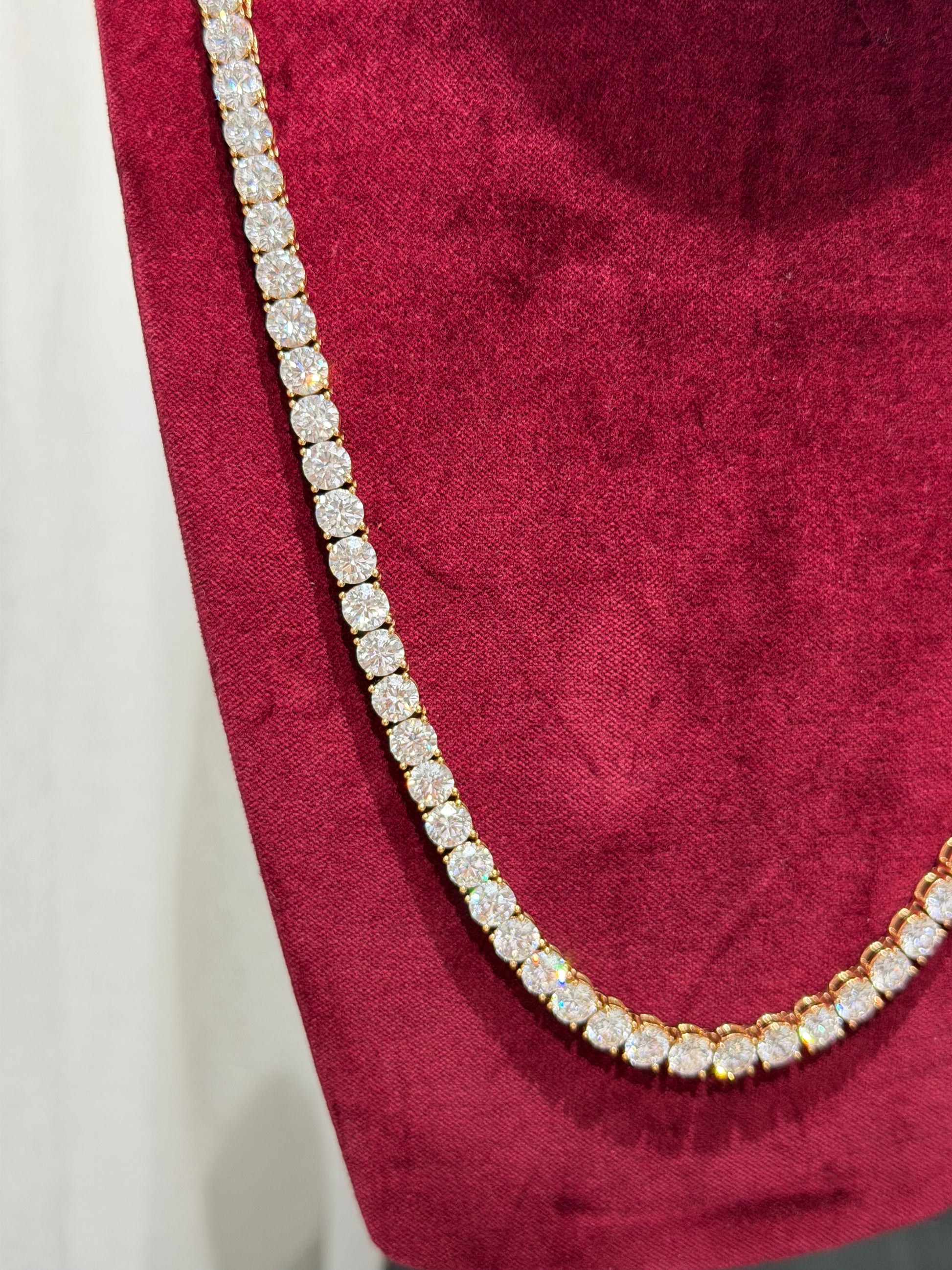 120CT Diamond Tennis Necklace – 1CT Round Pointers | 18K Yellow Gold | 70 CM